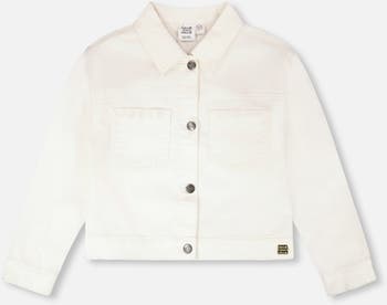 This white denim jacket with embroidery combines classic style with playful charm. Designed with a shirt collar and long sleeves, this classy layer features embroidered flower details above the chest pockets, a front button closure, a cropped fit for a modern twist and a large floral embroidery in the back. A versatile layer for cool days, perfect to mix and match with other items from our “Under The Daffodils” collection.