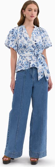 A feminine blouse designed with bubble sleeves and a flattering v-neck. The separate belt cinches the waist for a defined silhouette, while the allover floral print adds a fresh, romantic feel. Pair it with tailored trousers or denim for daytime plans or with a midi skirt and heels for brunches, work events, or casual evenings out.