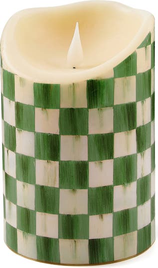 Emerald Check 6-Inch Flameless Pillar Candle