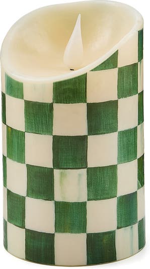 Emerald Check Flameless 5-Inch Pillar Candle