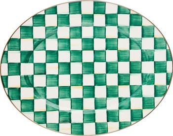 Hand-painted color-dragged checks are anything but basic on this enameled-steel platter that elevates everything you serve on it.