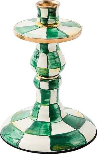 Emerald Check Small Enameled Steel Candleholder
