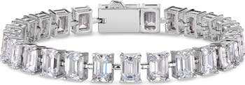Classic and refined, the Kathy Hilton Emerald Cut Tennis Bracelet features 27 carats of Diamond Crystalline gems in a timeless design.