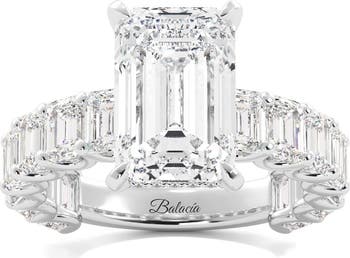 This timeless engagement ring features a breathtaking 3.5 carat emerald-cut center diamond, accented by matching emerald-cut side stones for a sophisticated and balanced design. Crafted with precision, the band radiates elegance and sparkles, making it a stunning choice for a lifelong commitment.