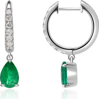 Light up your lobes with the gorgeous sparkle emanating from the pavé diamonds and pear-cut emeralds on these earrings crafted from 14-karat white gold.