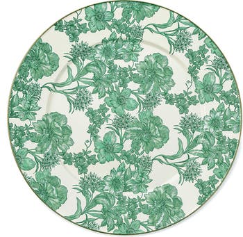 A bronzed rim highlights the stately pattern that brings a riotous English garden to your table every time you serve one of your masterpieces on this beautifully enameled steel platter.