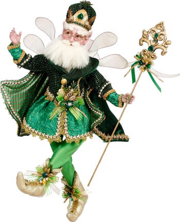 The Mark Roberts Emerald Everything Fairy dazzles with vibrant green color, glittering accents, and exquisitely detailed fabrics that capture the magic of springtime enchantment. Her expressive face and poseable design bring personality and charm, making her a standout addition to any seasonal display. With luxurious embellishments and whimsical craftsmanship, she brings a touch of elegance and fairy-tale wonder to every setting.