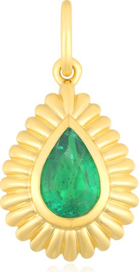 A pear-cut emerald brings captivating color and sparkle to this 14-karat-gold charm with light-catching fluted texture.