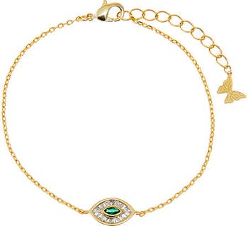 Say it with sparkle in the Emerald Green X Baguette Evil Eye Bracelet by Adina Eden, a confident and classy Bracelet. Curated for versatility and flair, this 14k gold plated bracelet comes in Emerald Green. From solo errands to group dinners, this little detail changes everything—without making you feel like you're trying too hard. Elevate this gold plated bracelet with pieces from our Tennis Bracelets collection to make your everyday styling effortless. A final touch that instantly finishes even your simplest looks.