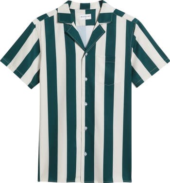 This boldly striped, lightweight shirt is made from reCOCOBLEND fabric sourced from recycled plastic bottles and coconut-husk fibers and woven with four-way stretch. It's naturally antimicrobial and offers UPF sun protection, bringing a crisp finish and smart comfort to any sunny-day look.