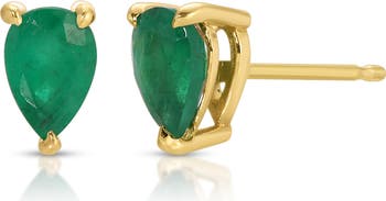 Prong-set emeralds in pear shapes bring sweet color to these stud earrings set in 14-karat gold.