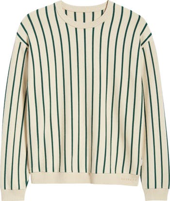 The classic crewneck sweater steps up its game with vertical pencil stripes in a relaxed and lightweight iteration you'll wear multiple seasons of the year.