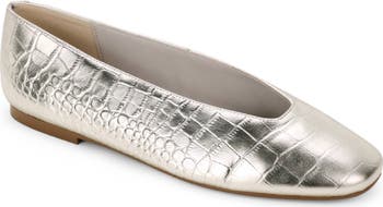 Clean lines and a slim profile distinguish a wear-anywhere flat featuring a croc-embossed leather upper and flexible rubber sole.