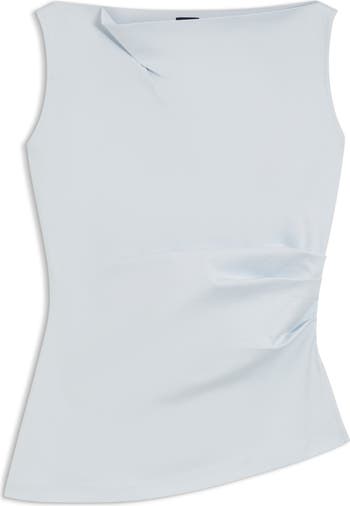 Mercerizing brings subtle luster to the heavyweight cotton of this sleeveless top that takes an elegant stance thanks to the cowl neck and gathered pleats up one side.