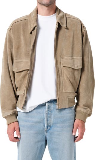 Roomy utility pockets enhance the timelessly cool aesthetic of this soft suede bomber jacket cut in a slouchy, easy-to-layer fit.