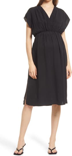 A bump-friendly silhouette flatters your changing figure in this flowy dress featuring a hidden panel for discreet nursing access once your little one arrives.