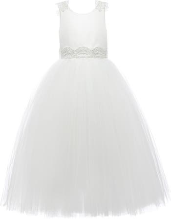Timelessly designed, the Emilia Dress makes a serene, elegant statement. A lace waistband adds vintage-inspired charm, while the flowing tulle skirt brings a fairytale touch, perfect for memorable occasions. With delicate shoulder lace and a voluminous silhouette, this dress is ideal for weddings, communions, or any celebration that calls for grace and beauty.