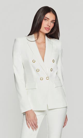 The Emilio Crepe Blazer features a sharp double-breasted cut with sleek gold-rimmed buttons that bring instant polish. Its tailored fit defines the waist while maintaining a strong, confident silhouette. Perfect for commanding the office, stepping into an evening event, or pairing with matching crepe pants for a monochromatic look that radiates modern sophistication. Self: 95% Polyester, 5% Elastane Lining: 95% Polyester, 5% Elastane Professional Dry Clean True To Size Functional Flap And Welt Pockets Gold Rim Button Length: 26 1/2'' Back Length 26'', Sleeve Length 23 3/4'' Model Size & Fit Model wears: US 2/XS / UK 6 / EU 34 Model's height: 5'10″ / 178cm