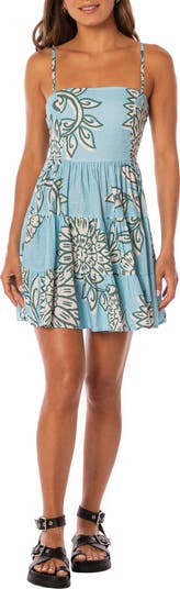 This printed dress makes a stunning swim cover-up with a comfortable smocked back and a flared skirt that further the vacay vibes.