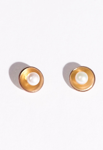 The Emma Pearl Dish Studs are a true treasure. Each handmade gold disc cradles a single freshwater pearl, giving the illusion that it’s effortlessly floating within its sculpted, bowl-shaped design. The sleek contours and radiant luster of the pearl create a graceful centerpiece that’s both timeless and modern. Perfect for adding a touch of elegance to your everyday look or completing a sophisticated ensemble, these studs are a must-have for any jewelry lover.