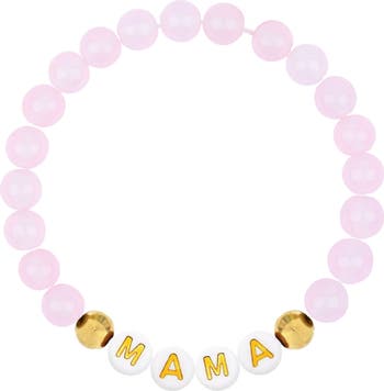 Celebrate the beauty of motherhood with the Emma Rae MAMA Bracelet. This elegant 6.5-inch piece features a curated blend of polished 14K gold filled beads and genuine pink semi-precious gemstones. Proudly crafted in California, it centers on "MAMA" letter beads, offering a sophisticated and sentimental look designed to be worn as a meaningful statement piece or as the heart of your favorite bracelet stack. Features & Details: 14K Gold Filled Accents: Crafted with high-quality gold-filled beads that offer the rich look of solid gold with superior durability. Hypoallergenic & Tarnish-Resistant: The gold-filled material is safe for sensitive skin and designed to maintain its brilliant luster through daily wear. Soft Pink Semi-Precious Gemstones: Features hand-selected pink Rose Quartz beads, chosen for their delicate color and natural beauty. "MAMA" Letter Beads: Elegant white and gold letter beads create a beautiful focal point that celebrates her most important title. Comfortable 6.5-Inch Fit: Designed on professional-grade stretch cord for effortless wearability, ensuring a secure and comfortable fit on standard wrists. Artisan California Quality: Each bracelet is hand-assembled in our California studio with meticulous attention to detail and quality. Ready for Gifting: Arrives beautifully prepackaged on a signature Emma Rae card, making it a thoughtful and effortless gift for any mom. Specifications: Materials: 14K Gold Filled, Natural Pink Gemstones, Acrylic Letter Beads. Size: 6.5-inch circumference (Standard Women's Fit). Origin: Crafted in California, USA. Packaging: Signature display card included. Care Instructions To preserve the life of your gemstones and the brilliance of the gold, avoid contact with harsh chemicals, perfumes, and lotions. Store in a dry place and gently wipe with a soft cloth to maintain its shine.