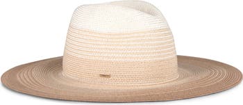 Top off your vacation-ready look with this lightweight fedora woven in a striped design from cool, breathable straw. Plus, it's packable, which makes it perfect for throwing into your luggage.
