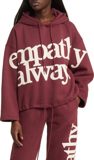 Bold lettering pushes a caring agenda from a roomy cotton-blend-fleece hoodie finished with a drawstring hem.