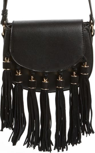 A faux-leather crossbody bag puts you in the fashion mix thanks to a trend-forward saddle bag silhouette and row of swingy suede tassels.