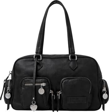 Plentiful zip pockets play up the retro vibes of this outfit-making faux-leather shoulder bag.