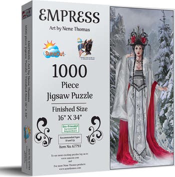 Embark on a captivating voyage with the Empress 1000 Piece Jigsaw Puzzle by SunsOut—a fusion of stunning artistry, quality craftsmanship, and eco-friendly values. Renowned fantasy artist Nene Thomas creates an enchanting visual experience, showcasing a mythical empress in a mesmerizing winter landscape across the completed 16" x 34" canvas. Each piece, crafted from high-quality recycled cardboard with soy-based inks, interlocks seamlessly for an exceptional tactile experience that promises maximum satisfaction and entertainment. SunsOut stands behind their superior products with a worry-free guarantee, swiftly resolving any issues with damaged or missing pieces to ensure peak customer satisfaction. By supporting SunsOut, you not only engage in a delightful hobby but also endorse a proud, woman-owned small business committed to artistic excellence and environmental sustainability. The Empress jigsaw puzzle transcends ordinary pastimes, evolving into a remarkable piece of art that enriches your leisure time and spirit while promoting eco-conscious entertainment. Revel in the breathtaking merger of imagination and tangible craft, where moments of joy and relaxation are born.