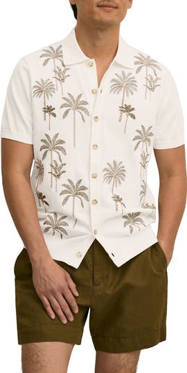 Blooming in embroidered palm trees, this cardigan knit from breathable cotton features a pointed polo collar topping a full-button front. Its short sleeves and lightweight feel make it perfect for sunny weather, elevated occasions, and days where you just want to smarten a favorite look.