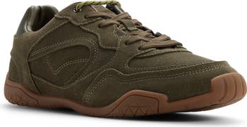 A dual-density foam footbed ensures daylong comfort in this sporty sneaker topped with a layered suede upper.