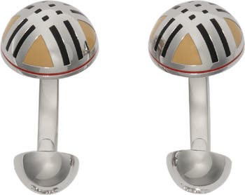 A pair of cufflinks made in Italy from palladium-plated brass. The design is enamelled with a check pattern.||Engraved Burberry lettering at back|Comes with a dust bag