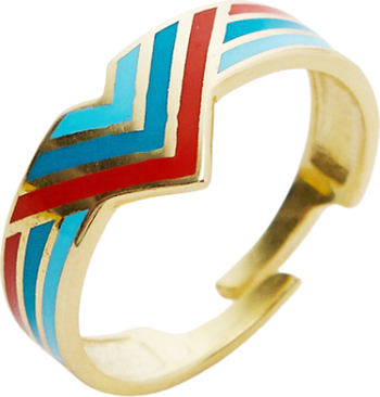 Rings on rings! If you are a freaking rings lover, then this pop yet playful Enamel Arrow Band Ring is for you. This ring is handmade in 925 sterling silver material that is premium-quality, durable, lightweight, and brightly polished finish. Owing to its details, it features a geometric arrow design enameled with blue and red colors- set in a lustrous gold tone that allures brilliantly. Wear it alone for a minimal style, or layer it with gleaming ring bands for a layered look.