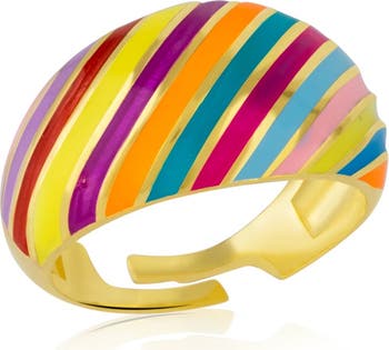 Enamel Rainbow Stripe Chunky Sterling Silver Ring