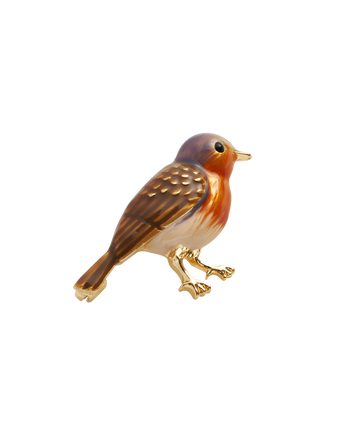 Symbolic Meaning: Embrace the presence of loved ones with the Enamel Robin Brooch, symbolizing joy and connection with its vibrant red breast. Artisan Craftsmanship: Intricately hand-painted enamel and hand-carved detailing capture the essence of the beloved robin bird. Versatile Styling: Wear it in multiple ways—fasten a scarf, adorn a lapel, jazz up a jumper, or add flair to a collar for a modern twist. Elegant Design: Gold-plated finish adds a touch of sophistication to this timeless piece.