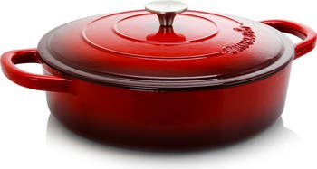 Slow simmer a flavorful stew or bake up a new creation with the versatile Crock-Pot Artisan 5 Quart Braiser Pan with self basting lid. Made of quality cast iron with a beautiful and durable enameled finish, it looks great in the kitchen or on the table. The Artisan series is an updated American classic that every home needs. Cook delicious meals with this versatile Braiser which distributes and retains heat evenly. Effortlessly take it from the stove-top to the oven and store leftovers in the refrigerator. The lower profile is a true selling point for cooking, serving and storage. Features:* Distributes and retains heat evenly * Perfect for Cooking, Serving and Storing * Large handles make it easy to carry * Self-Basting Lid * Works on gas, electric, ceramic, and induction cook-tops * Oven safe up to 500 degrees* Hand wash recommended - * Use pot holders as handles will get hot