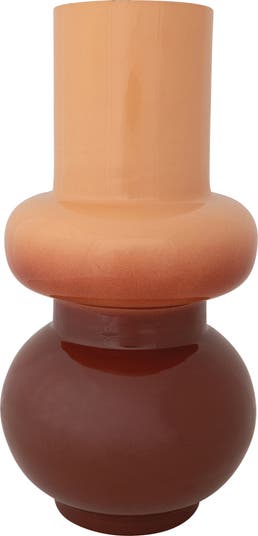 Add warmth and artistic flair to any space with this Enameled Metal Indoor/Outdoor Vase, designed in a captivating rust-to-nude color ombre. Its refined gradient and smooth silhouette make it an ideal complement to Farmhouse, Boho, Modern, Scandinavian, and Transitional interiors, adding a sophisticated yet organic touch. Whether showcasing fresh or dried floral arrangements, decorative branches, or standing alone as a sculptural accent, its durable metal construction ensures long-lasting beauty. The sleek enameled finish enhances its visual appeal, making it a standout decorative piece. Measuring 6.75 inches in diameter and 12.75 inches in height, this vase seamlessly blends contemporary design with timeless versatility.