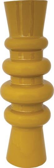 Enhance any space with this Enameled Metal Vase, designed in a rich mustard hue with a sleek round silhouette. Its bold color and refined finish seamlessly complement Boho, Coastal, Farmhouse, Modern, and Scandinavian interiors, making it a stylish choice for displaying floral arrangements, decorative branches, or as a standalone accent. Crafted from durable metal with a smooth enameled surface, this vase offers lasting beauty and sophistication. Measuring 6.5 inches in diameter and 20 inches in height, it blends contemporary artistry with timeless versatility for both indoor and outdoor décor.