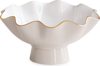 Next level design. Notable for its gently curving sides, elegant rise, and brilliant two-tone finish rimmed in gold, the ENCANTO Carola Small Pedestal (Cream and White) is a fabulous design that is as practical as it is decorative. Ideal for fruit, snacks and desserts, combine with other ENCANTO Carola pieces for an elevated serving set. The ENCANTO Collection pieces are all about classic shapes, re-invented in lively colors. Fashionably tailored in delightful colors, ENCANTO items are fabulous gift items for brides, and perfect for anyone who loves to entertain and decorate. On trend, their beautiful designs with curving forms add grace and sophistication to any setting. Makes an awesome centerpiece! Beatriz Ball’s intensely handmade products use eco-friendly and sustainable materials and are crafted by artisans who trace a heritage of metalworking for generations.