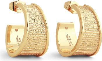 Nature never fails to inspire art, and these tapered hoop earrings feature sculptural texture inspired by woodgrain etched into the 18-karat-gold-dipped surface.