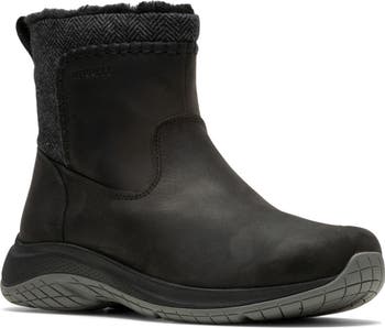 A cozy faux-fur lining and cushioned footbed cradle each step in this bootie built with waterproof leather and set on a grippy sole that offers sure-footed traction.