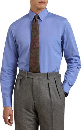 From fabric to finish, this Italian-cotton button-up is built with an end-on-end weave that breathes beautifully and refines the surface. The crisp point collar stays neat and the raised placket gives a subtle lift that reads clean and intentional.