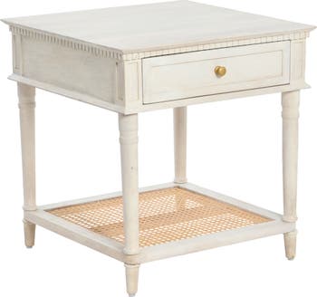 - This square end table features a drawer and a lower natural cane storage shelf to help keep your belongings organized; Use it as an end table or side table in your living room, a bedside nightstand in the bedroom, or anywhere in your home you need a small table