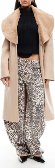 Love the elegant flow of this coat. The fur is removable if you prefer a sleeker look. I'm not sure I love the belt that much. No matter how hard you tuck it, it keeps loosening. A simple knot belt would have worked better here. All in all a great coat, does not feel cheap.
