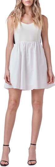 A voluminous A-line dress is perfected by an inky black bow for posh detail and modern contrast.