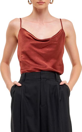 A silky camisole fashioned with a cowl neck provides the perfect way to elevate any look.