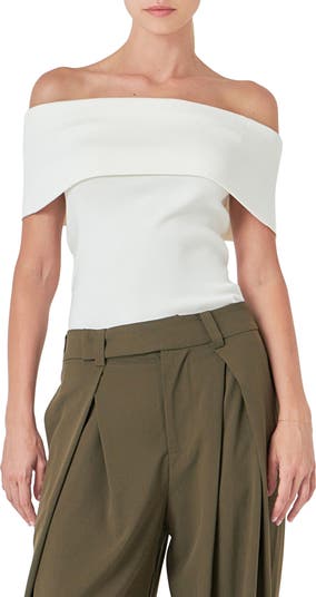 Add a casually chic note with a knit top designed to show off your shoulders.