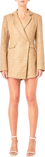 Speckles of shiny sequins distinguish this chic tweed minidress cut with a polished blazer silhouette and long sleeves.