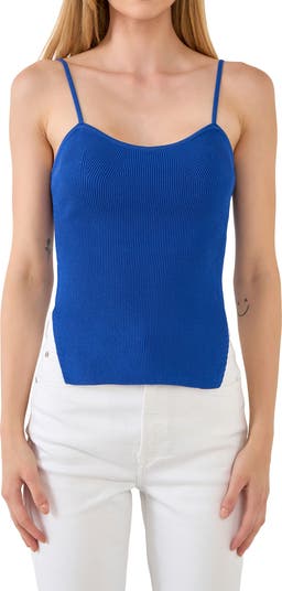 Corset-inspired ribbing adds elevated style to this slender strap camisole finished with a split hem.